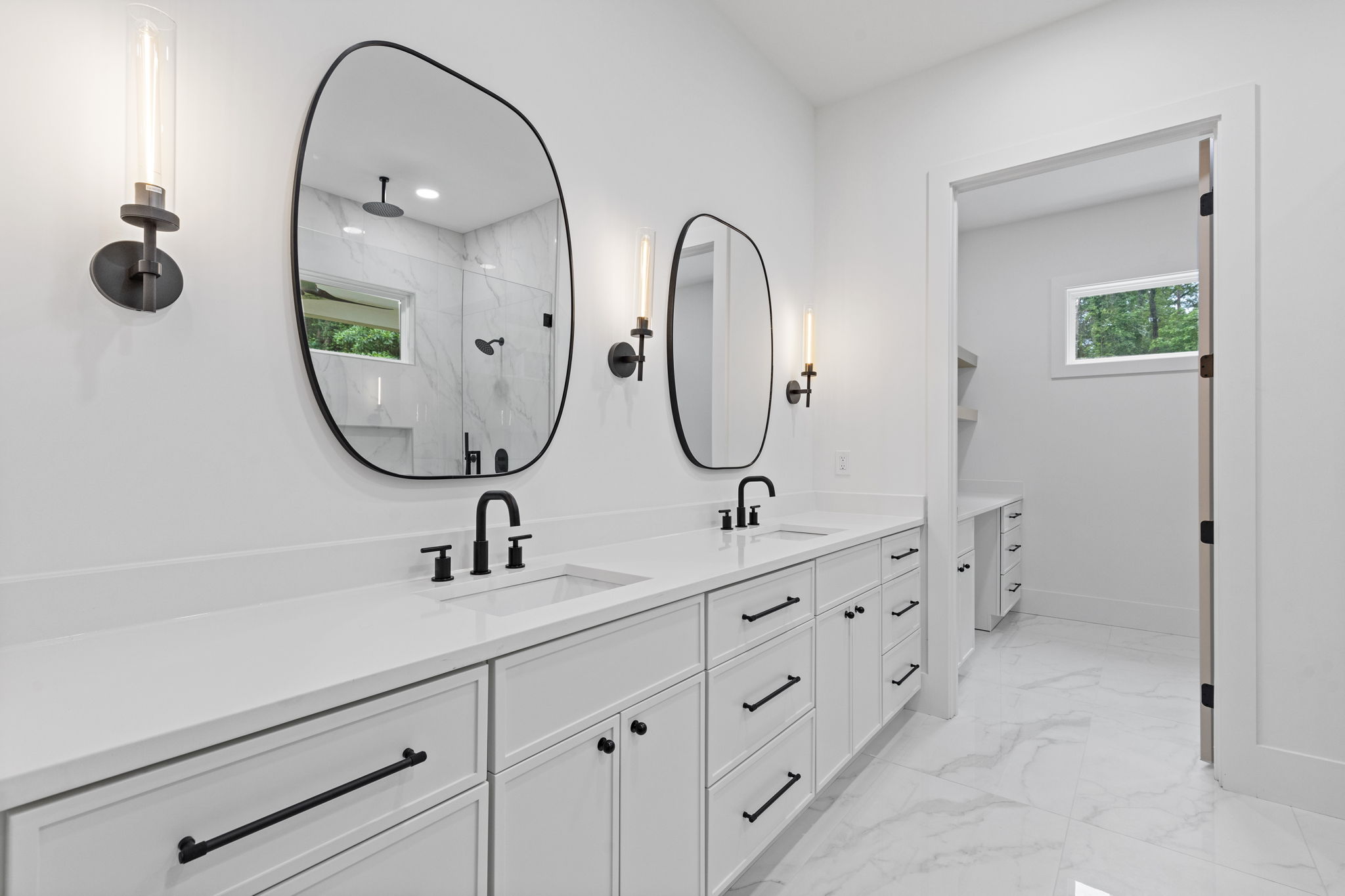 The centerpiece of the home is a magnificent two-story great room, Tucked away on the main level is a spacious secondary bedroom ensuite, an additional half bathroom and a mudroom that leads to the garage. On the upper level, you'll appreciate the serene owner's suite with a complete bathroom, a massive walk-in shower, a standalone soaking tub, and custom wardrobe closets.